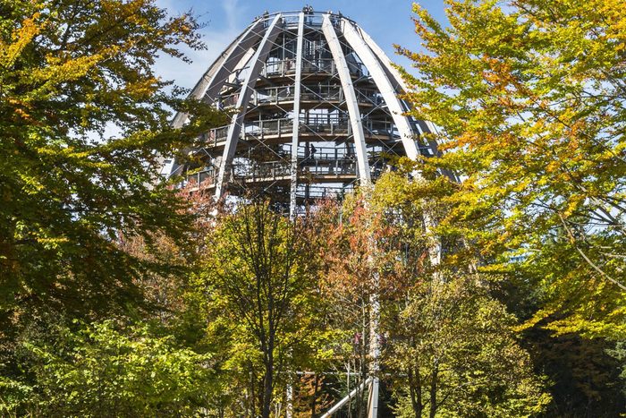Less “house” than “path,” Baumwipfelpfad in Germany’s Bavarian Forest National Park translates to “treetop walk.” Visitors can climb the 4,300-foot path as it gently inclines, making their way up 140 feet to a 360-degree observation deck.