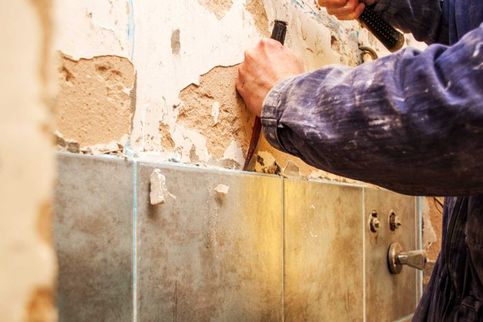 You’ve resigned to the fact that you’re not the DIY home improvement type. But that doesn’t mean you can’t save some cash and do the demolition yourself—after all, how hard can it be to tear stuff down? It may even seem like fun, at least until you take a sledgehammer to a wall and destroy vital support structure or worse, hit electric wires. “This becomes costly for the client and can delay the project,” says Yoel Piotraut, managing partner at MyHome, a kitchen remodeling and bathroom renovation company. “A contractor must be called. During demolition, it’s very important to be careful not to damage any parts of the space that will stay.” Aside from demolition mistakes, check out the pictures of these home improvement fails that will make you cringe!