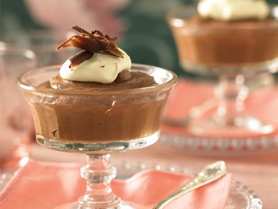 4. Spoon the mixture into six 6-ounce glasses or small serving dishes. Cover with plastic wrap and refrigerate for 3 hours, or until the mousses have thickened slightly and are well chilled. Serve topped with whipped cream and shaved chocolate, if desired.