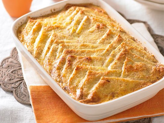 1. Preheat the oven to 300°F. Brush a shallow rectangular baking dish with a little melted butter.