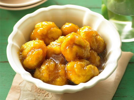 3. Drizzle the dumplings with the pan syrup and serve with cream or vanilla ice cream.