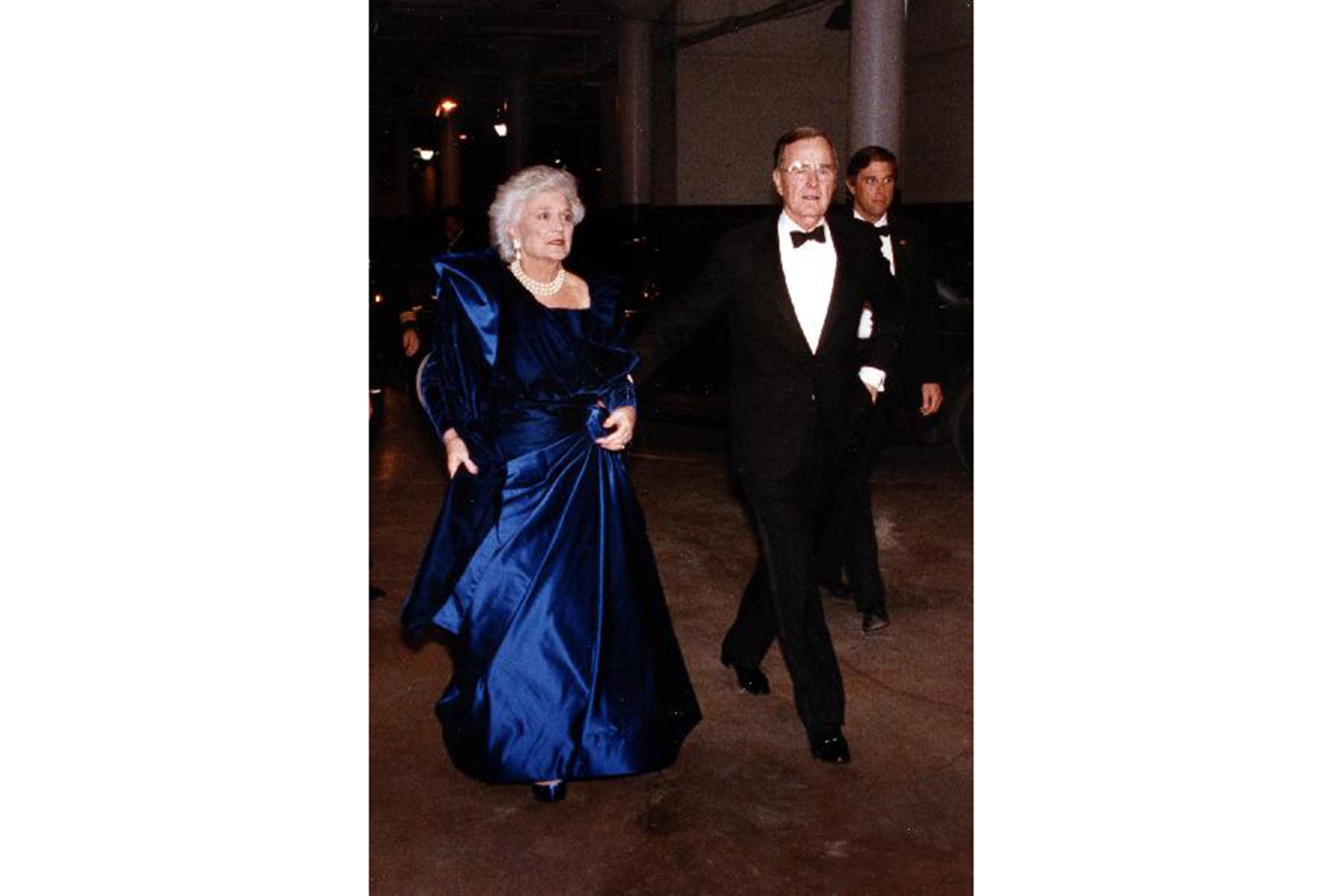 At age 63, Barbara Bush was the oldest First Lady in over a century. But that didn’t mean she had to dress like it. For her inauguration gown, she chose a velvet blue bodice with asymmetrical draped satin skirt by Arnold Scassi, who once noted that Bush suddenly was “the most glamorous grandmother in the United States.” Check out these things that former presidents aren’t allowed to do after leaving office.