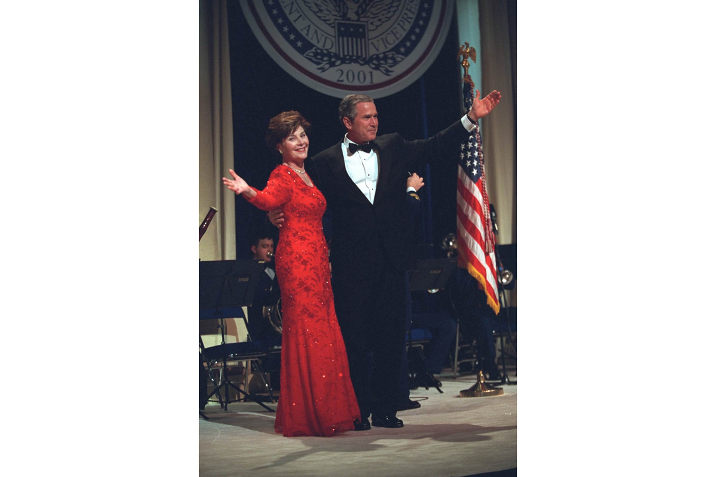For her husband’s second inauguration, Laura Bush also chose red once again, although a bit more subdued. Her Carolina Herrera shirt dress gown fit better with her conservative style with a high neckline and three-quarter length sleeves. We bet you never knew about these 8 perks presidents get to keep after leaving office.