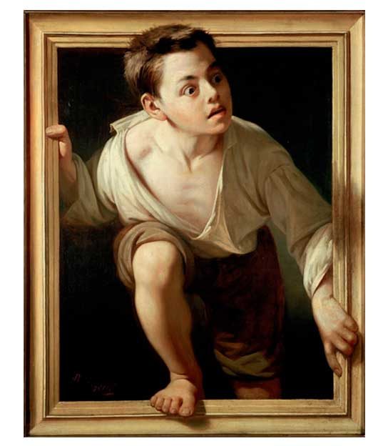 Preempting the surrealists, Spain’s del Caso blurred the lines between image and reality with this bug-eyed boy’s desperate escape from gallery prison. Such a convincing trompe-l’oleil (that’s art-talk for “optical illusion”) may’ve baffled as many 19th century viewers as it amused, although modern internet users probably understand the need to flee from trolls.