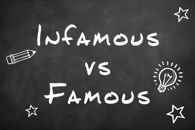 The rich and famous are widely known (and wealthy). But the rich and infamous have a reputation of the worst kind. Another way to look at it: Unless Aunt Donna’s chocolate chip cookies are notoriously evil and disgraceful, they are famous, not infamous.
