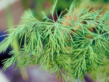 Uses: Both seeds and leaves have a sharp, slightly bitter taste. Use dried or fresh leaves, knows as dilweed, to flavor fish, soups, salads, meat, poultry, omelets and potatoes. Sprinkle dill on sliced cucumber to make a sandwich filling.