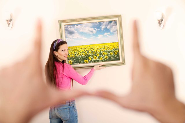Keep picture frames spatially related to and in proportion with a piece of furniture in the room. For example, hang a four-foot painting above a five-foot sofa. “The art has got to connect to something,” says Marissa Sauer, interior designer and founder of Design MACS. Random artwork can also make a room appear cluttered. These decorating mistakes make your home look messy.