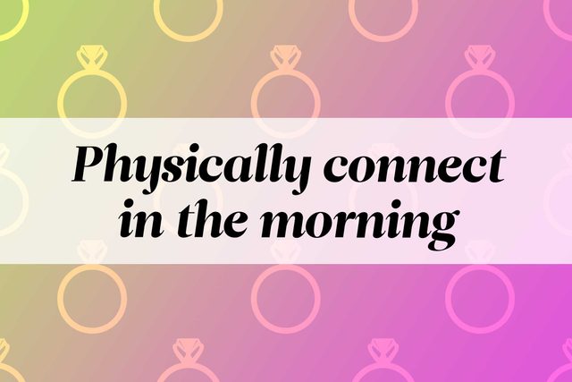 Cuddling before bed is a nice way to end the day, but it’s an even better routine to start your morning with. Set your alarm five minutes earlier than usual to give yourself time to snuggle close. You don’t have to say a word (this is pre-coffee, after all), but connecting physically before starting your morning will make you feel closer and more secure through the rest of the day.