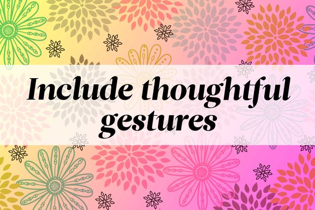 Does he have a big meeting? Is she dreading a phone call to an important client? Is she having lunch with an old friend? Talking about the daily details of your lives is just as important as sharing hopes, dreams, and fears, so asking about those details is a great way to build understanding and rapport. And don’t forget to ask how that meeting, phone call, or lunch turned out. Your thoughtfulness will make your partner feel loved and cared for. These are other tiny ways to make your spouse feel loved.