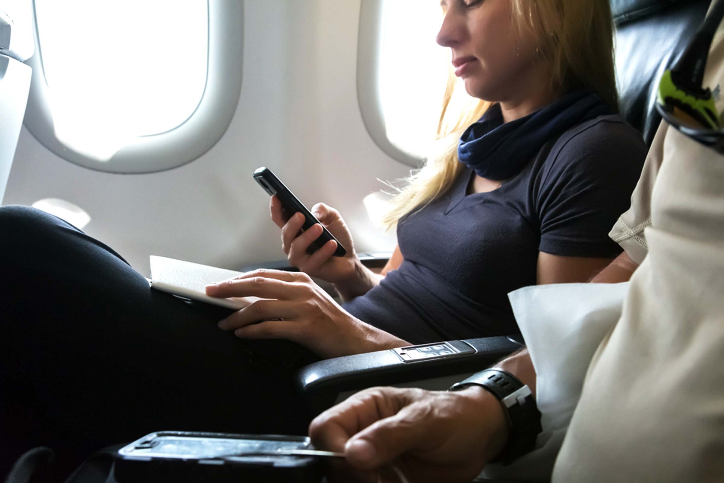 Travel writer Ramsey Qubein (aka @DailyTravelTips on Twitter) flies over 400,000 miles annually as a contributor to a number of major news and travel publications. He recommends always staying hydrated while flying. “Drink lots of water and avoid caffeine and alcohol. Of course, this is not always easy for passengers in middle seats (getting up to the bathroom can be annoying) or those enjoying premium cabin amenities.” When you land, drink as much water as possible. “Cold water is even more refreshing,” he says. Drinking water is encouraged on board, but make sure you never do these 18 things on an airplane.