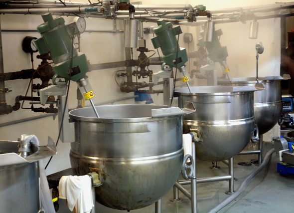 Yep, you read that right. Concocting jelly beans requires many steps. First, liquid sugar and flavors are heated and mixed with starch and glucose. This is poured into bean-shaped starch molds and left to dry overnight. The next day, the starch is removed and the beans go through a steam bath and get sprayed with sugar. Next, they undergo what candy makers call “panning.” They’re put into a machine with a rotating drum, and while they spin, colors and flavors are added. Finally, grains of sugar are poured in—this sugar creates the bean’s hard shell. As a finishing touch, hot syrup and wax are applied to give shine. After all this shaking and making, the beans are thoroughly dried before they are packaged and shipped.