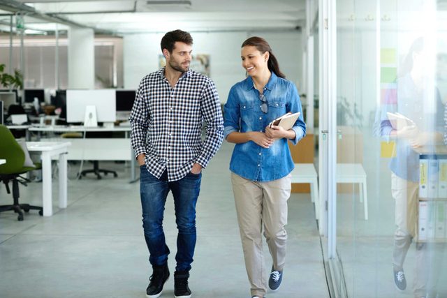 You can do this office exercise when you’re on the phone or doing something that doesn’t require you to write or participate beyond talking. Stand behind your chair, holding onto the back. Rest your right foot on back of your left lower leg. Do toe raises on your left foot. Switch sides. (If you’re in heels, remove them first.)