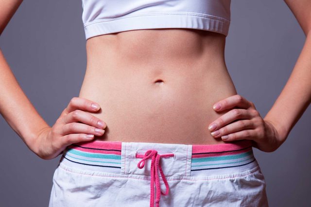 “We rely on this and it truly makes a huge flat-belly difference,” says Lakatos. Activate your abs by squeezing them in tight and pulling them back against your spine as you exhale. Picture zipping your abs together by using your muscles to contract your abs by pulling in from the center—think about pulling everything in a vertical line from your belly button up to between your breastbone, while also holding everything in and back toward your spine. Hold for a count of 10 as you continue to exhale. Slowly release and repeat for 10 reps at least three times. “Not only will this create good posture, it will also wake up the abs muscles and make it easier to keep your abs in,” says Lakatos Shames. Bonus: When you’re focusing on flat abs and a tight stomach you’re less likely to overeat at your desk. Here are 12 reasons your belly might be bloated.