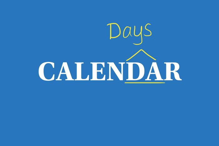 Calendar is commonly pronounced as if it would be spelled calender, with an “e” in the last syllable. Remind yourself that a calendar is a record of days. So be sure you use “da,” like days, at the end. Now that you know these spelling tricks, see if you can spell the most misspelled words in America. And next, check out these 7 common words that mean the opposite of what you think.