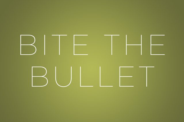 To decide to begin an unpleasant yet unavoidable experience is to “bite the bullet.” But rest assured knowing your predicament is likely not as nasty as the soldiers’ with whom this phrase originated. Before anesthetics and painkillers were invented, wounded fighters would literally bite down on a bullet to cope with the pain of a surgical procedure. Why a bullet? The lead they’re made of is more malleable than stones and other battlefield finds, and therefore less likely to break the patient’s teeth.