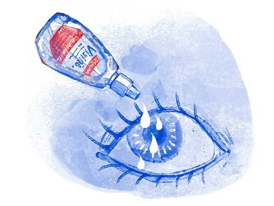Visine has used the famous slogan, “Gets the red out” in advertisements for more than 40 years. Its active ingredient, tetrahydrozoline hydrochloride, is a vasoconstrictor, which means it temporarily constricts blood vessels so redness is less visible. In some countries, Visine is known as Vispring.