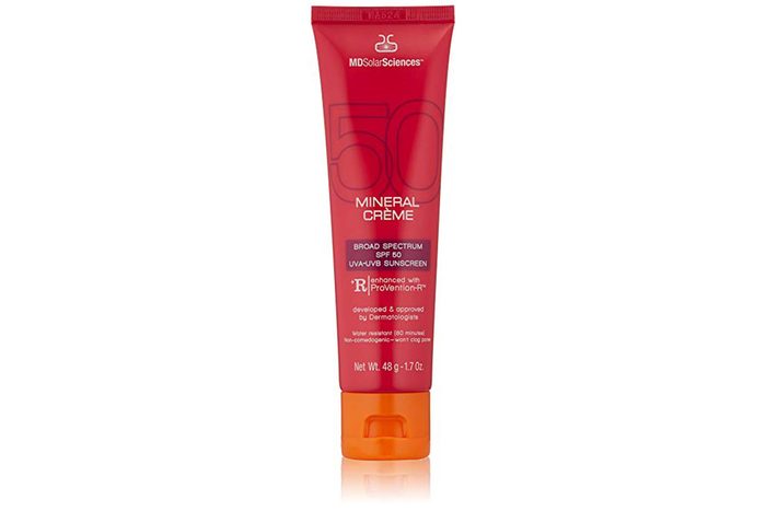 Garnering an “excellent” rating from the Environmental Working Group (EWG) for high UV protection and low toxicity, MDSolarSciences Mineral Crème Broad Spectrum SPF 50 Sunscreen is a hypoallergenic, non-comedogenic sunscreen that has an SPF of 50, thanks to its 17 percent zinc oxide and 2 percent titanium dioxide. “Because MD Solar Sciences was created by dermatologists,” says Adarsh Vijay Mudgil, MD, medical director of Mudgil Dermatology, “tremendous care was placed in the selection of each ingredient.” Some of those other ingredients include vitamin C, green tea, and cranberry and pomegranate extracts. Plus, adds Dr. Mudgil, it’s great for sensitive skin: “It was intended for use in all skin types, including those patients with eczema and rosacea.” P.S. Also get a scalp sunscreen to protect the spot you always forget about.