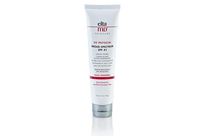 Dermatologists tend to do (metaphorical) backflips over EltaMD’s products, and the EltaMD UV Physical SPF 41 Facial Sunscreen earns particularly high marks for its mineral-based ingredients as well for how gentle it is. And when we say it’s gentle, it’s really gentle: It was created not just for sensitive skin but also for post-procedure skin. Oil-free, paraben-free and fragrance-free, this lightly tinted sunscreen also contains antioxidant protection to counteract aging associated with UV rays and has been recommended by the Skin Cancer Foundation.