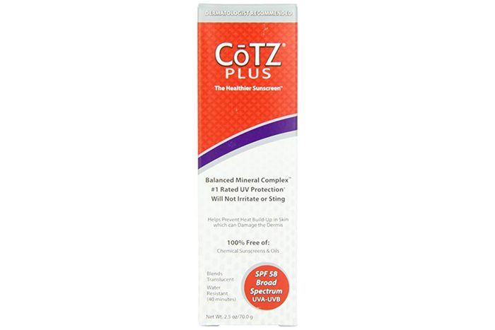 The gentle Cotz Plus SPF 58 Water Resistant UVB/UVA Sunscreen for Sensitive Skin features titanium dioxide and zinc oxide in an ultra-micronized (especially tiny particles) form. It also contains submicronized iron oxide, which provides a subtle tint and possibly acts as an additional UV blocker, though the FDA has yet to rule on that claim. The higher SPF, however, is something that the FDA has recently changed its stance on: They now approve sunscreens of up to SPF 60 instead of the previous SPF 50. Why? “Evidence shows that most people apply about half the sunscreen they need and forget to reapply; this can reduce the effective SPF the person is getting,” says Dr. Fromowitz. “As such, higher SPF sunscreen can help compensate for these issues.” Still not sure you applied enough sunscreen? Watch for these 12 hidden signs you’re about to get a serious sunburn.
