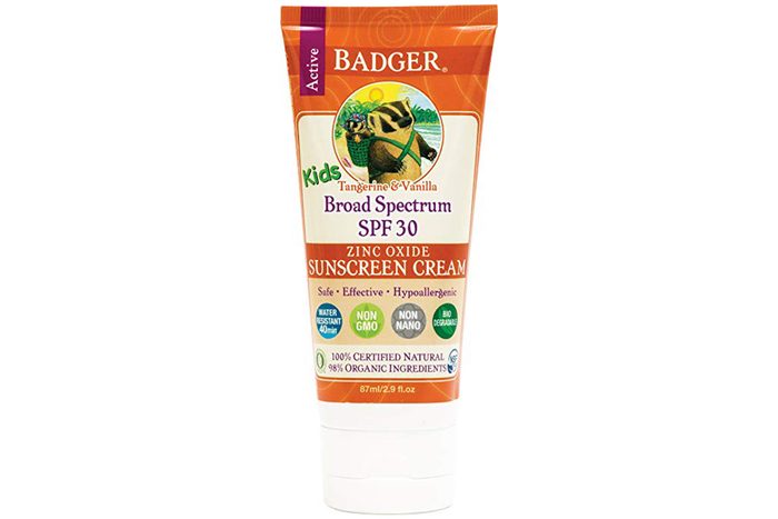With its tangerine and vanilla scent, Badger SPF 30 Kids Sunscreen might smell like a creamsicle—but don’t underestimate the serious punch it packs: With 18.75 percent non-nano zinc oxide, Badger’s sunscreen for kids provides strong protection for your little ones’ delicate skin. Less is more here: This sunscreen contains only six natural ingredients so you don’t have to wonder and worry about a list of unpronounceable chemical substances, just like in any of these best natural sunscreens. Learn more about those ingredients—here’s what these 8 labels on your sunscreen really mean.