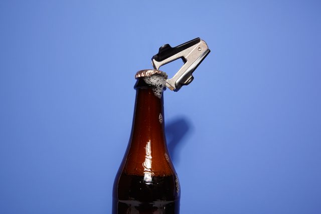 This college party trick is more academic than it looks, bro: to get it to work properly, you are essentially creating a lever out of the lighter, using your knuckle as the fulcrum. Grip the neck of the bottle with your non-dominant hand, leaving a lighter’s-width of space between your top finger and the beer cap. Lay the broad side of the lighter against the largest knuckle of your top finger, with the lighter’s butt resting just under the cap. Apply downward force to the free end of the lighter, levering the other end upward against the cap. It should pop off in seconds. Once you master the mechanics of this lever trick, you can use pretty much any object as a stand-in for the lighter, including…