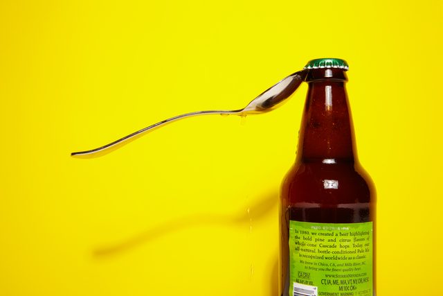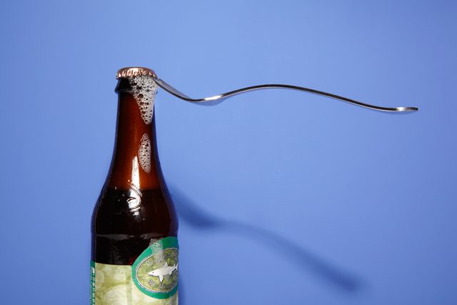 Using the same lever physics as the lighter method, you can almost effortlessly pop a cap with a common kitchen spoon (and not have to rely on the kindness of smokers to do it). Grip the bottle tightly with your non-dominant hand as explained above, then lay the curved side of the spoon against your largest knuckle, wedging the spoon’s small tip under the cap. Press downward on the spoon handle to lever the cap off lickety-split.