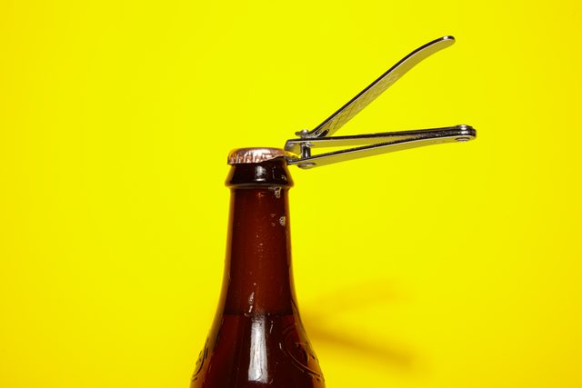 On those rare days when you have both a beer and staple remover on hand (but no bottle opener), this trick is a life-saver. (We’re not encouraging workplace drinking here, but we’re not judging you either.) Clamp the teeth of a common office staple remover down on either side of the cap, making sure one set of teeth is firmly under the cap. Keeping the teeth clamped tightly, pry upward against the cap. You may have to loosen a few sections of the cap in this manner before you can pop the whole thing off.
