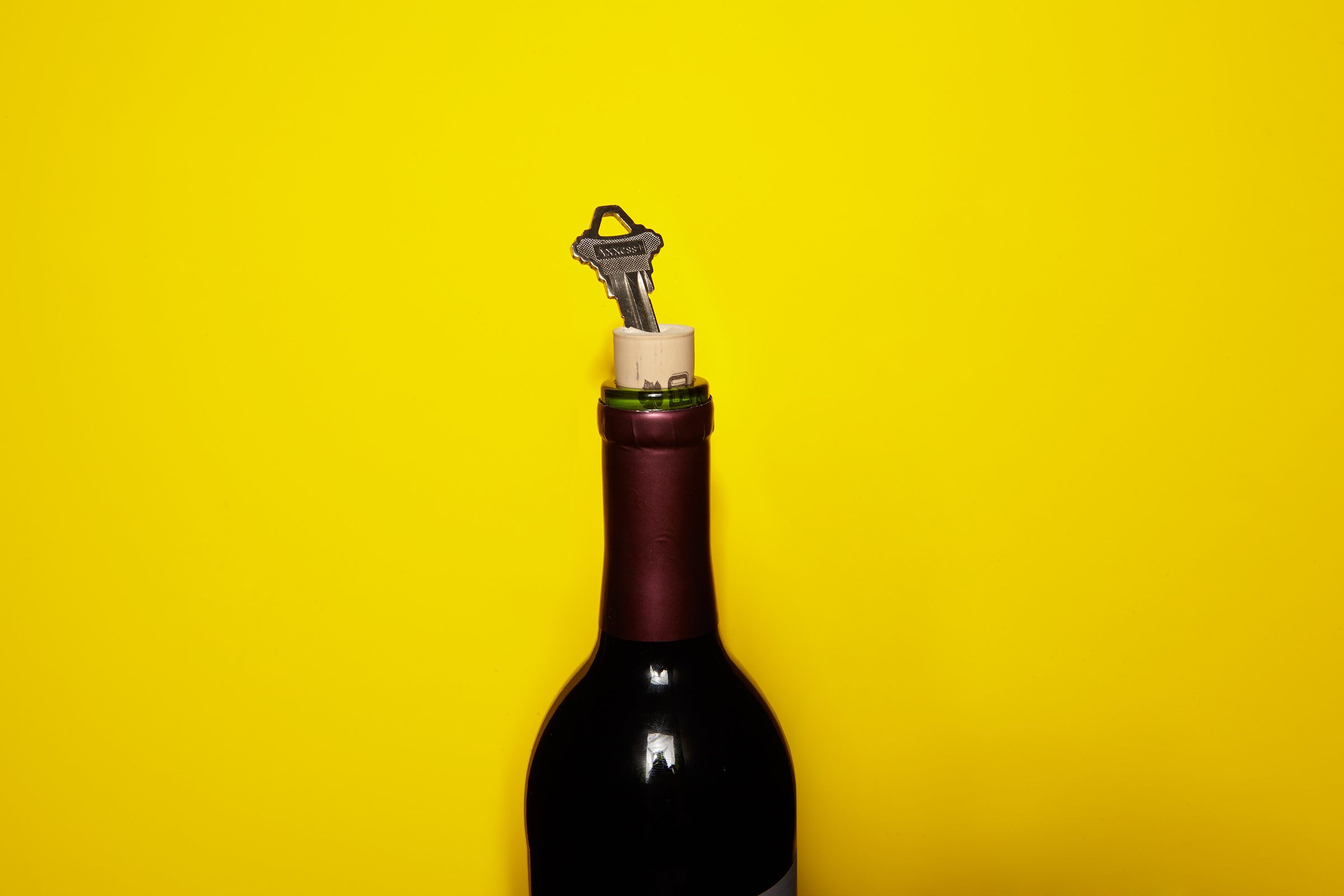 Nervous about using a hammer or scissors? Here’s how to open a wine bottle without a corkscrew and without potentially dangerous objects. Drive a house key diagonally into the cork at a 45-degree angle until it is all the way in. Slowly twist the key around and up, around and up, until you are able to get a grip on the cork and pull it out. In case using one of these tricks ends badly, here’s everything you need to know about red wine stain removal, including how to get red wine out of clothes.