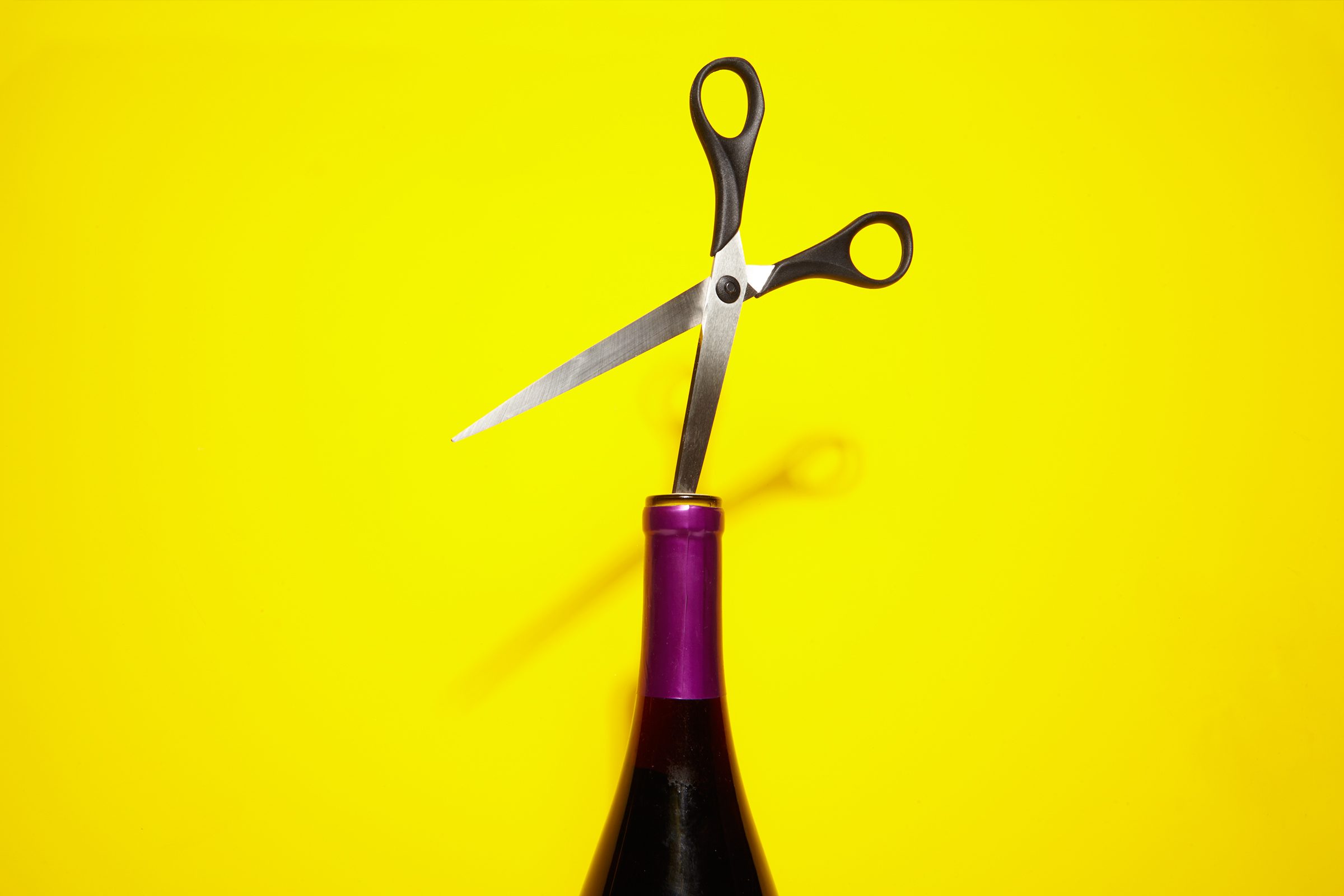 Open a pair of scissors so that the two blades are spread apart from one another. Stab one blade straight down into the cork. Gripping the scissors where the two blades meet, twist the cork out, pulling up little by little until it pops free. It’s easier than it sounds. By the way, here’s how to open a can without a can opener—knowing this could really come in handy.