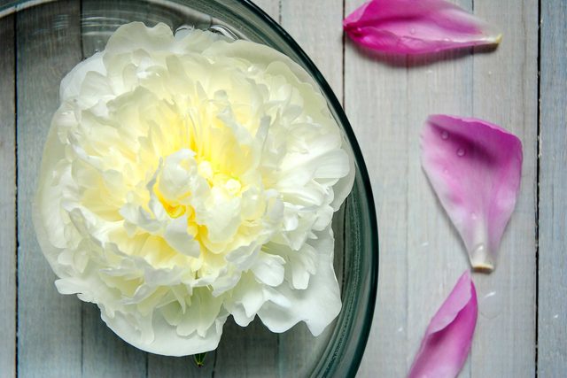 Big, flowery embellishments can make the space look busy—plus, they’re pricey and can make it hard for your guests to socialize around them. Place floating peonies and other stemless flowers in a small, flat bowl of water for a simple yet sophisticated table centerpiece.