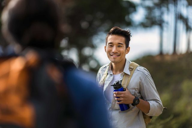 Hikers trying to stay hydrated sometimes drink too much water and suffer from water intoxication, which can be just as deadly as being dehydrated. So go for what we call “mellow yellow.” Drink just enough water to keep your urine light yellow in color. And, if you get low on water…uh, we don’t recommend drinking your own urine.