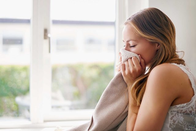 Lotion acts as a bind to help the perfume stick to your skin, so rub a bit in to the spot you’ll be perfuming. “Your skin is not necessarily the best clinger for perfume,” says Anne Serrano-McClain, founder of MCMC Fragrances. “Skin is kind of oily and doesn’t absorb.” Choose an unscented moisturizer to keep from combining smells, giving all the attention to your perfume. Check out these beauty products dermatologists say are a waste.
