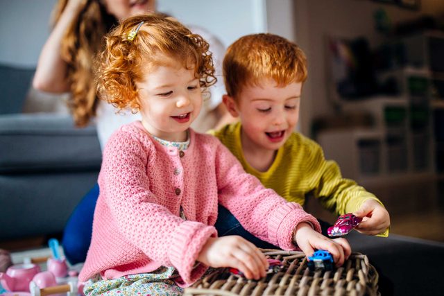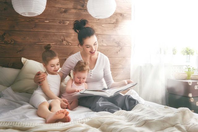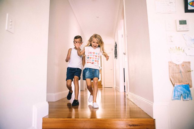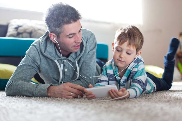 Use audio books or kids’ podcasts to entertain younger kids without relying on a screen. “My son is four, and we snuggle on the couch and listen to David Bowie narrate Peter and the Wolf together,” says Jessica Friedmann. Audio books can be played on apps including Audible. Podcasts, like Storynory or Sesame Street podcast are also a great way to get a few minutes of rest when you home with active toddlers. (Find out how to carve out more “me” time every day.)