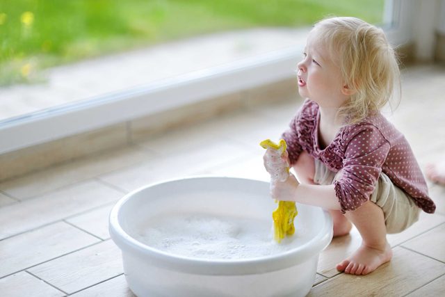 Most kids are obsessed with playing in water. Put your kids in their swimsuits, place a few towels on the floor in your kitchen and scatter toy dishes on top. Fill a few cups with water and let your kids go crazy dumping and pouring water into various toys, cups, and containers.