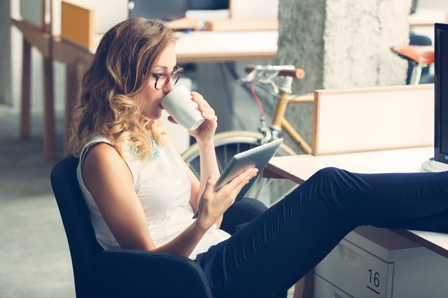 Don’t wait until you get to the office to reach for your morning yogurt. Sitting in front of the computer with food and coffee make you more likely to surf blogs and social media instead of jumping to important tasks, says Laura Stack, productivity speaker and author of Doing the Right Things Right: How the Effective Executive Spends Time. “You can’t really work when you’ve got a spoon in hand and are constantly reaching for something,” she says. “You get this laidback feeling, and it’s not as productive as having both hands on the keyboard.” Don’t miss these 18 tips for a productive, stress-free morning.