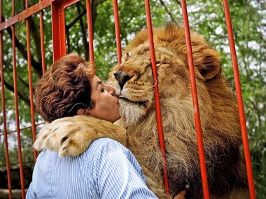 With paws the size of dinner plates, bright black eyes, and a luxuriant golden mane, Jupiter, a 13-year-old, 550-pound lion, bears no resemblance to the malnourished cub that Ana Julia Torres rescued from a traveling circus in Colombia in 1999.