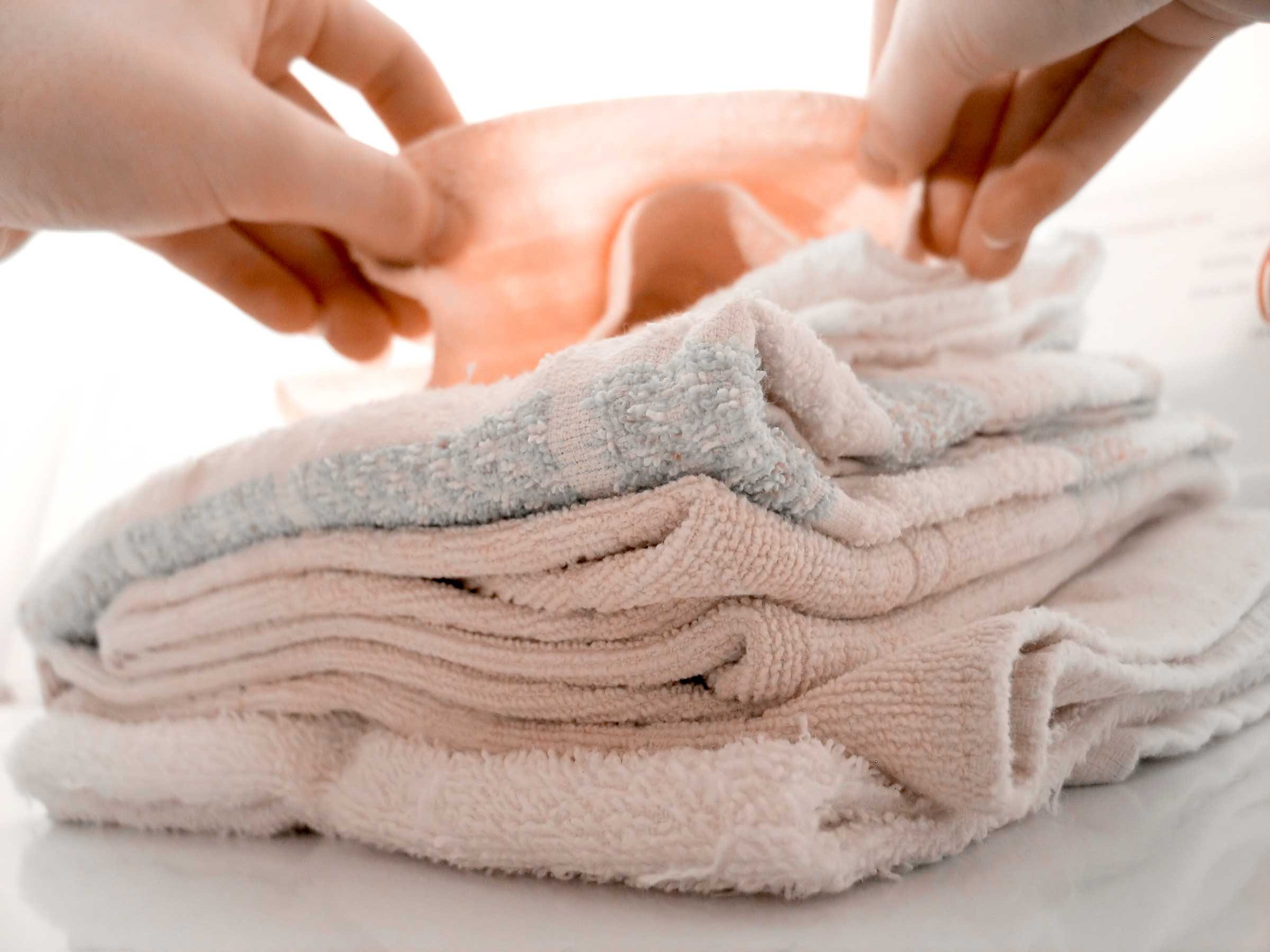 Stop wasting time folding cleaning rags. Hang a reusable shopping tote bag from a hook and toss them inside after laundering.