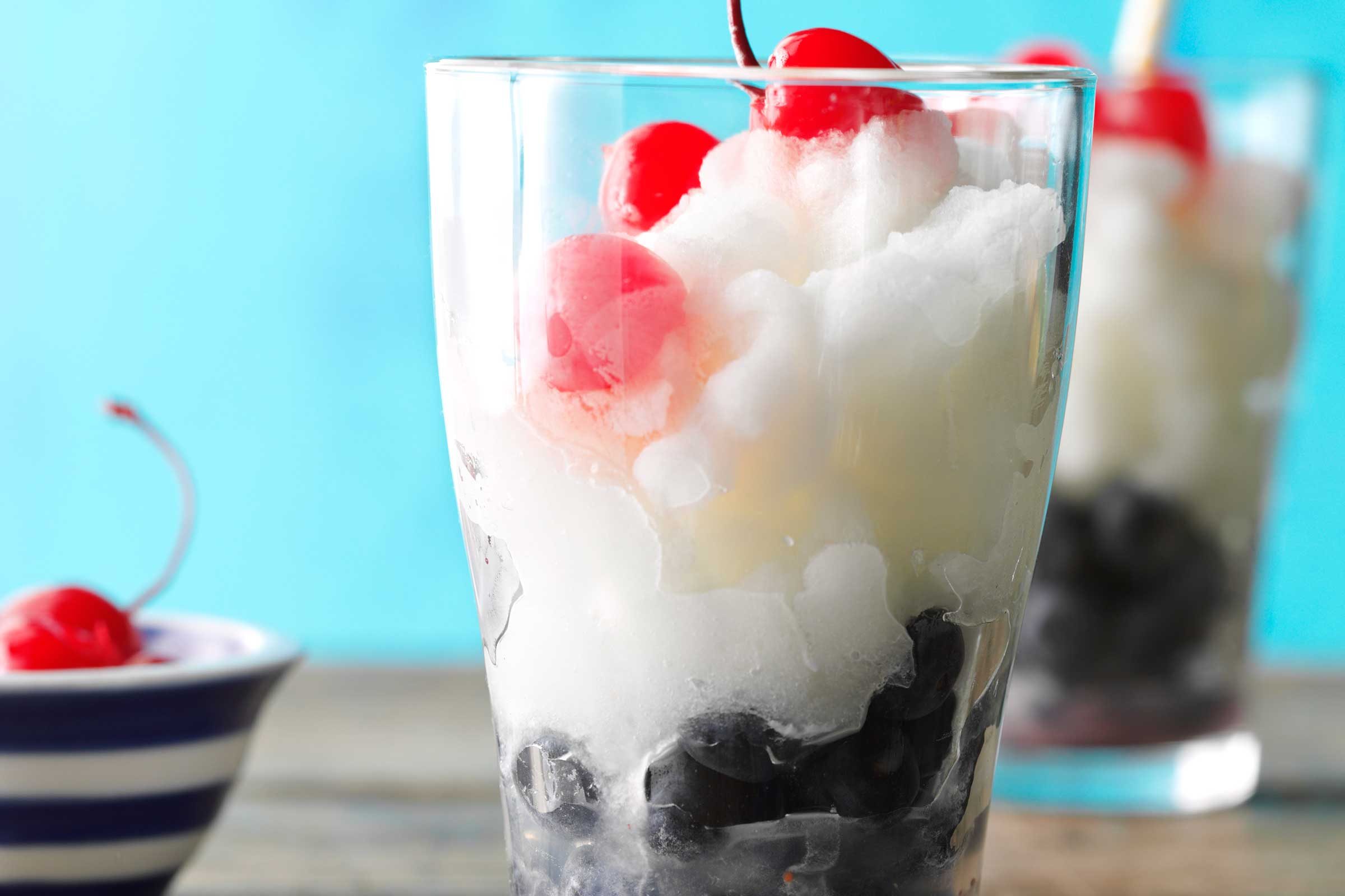 This patriotic drink is as pretty as it is tasty. Layering cherries, blueberries, and lemon juice, we created a striped lemonade that sings with Fourth of July pride. —Shawn Carleton, San Diego, California