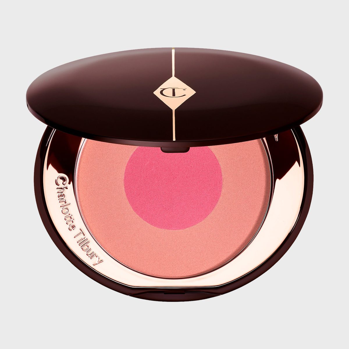 “I’m a cream blush junkie, but in the summer, I’ll often switch to a powder formula,” says Aharon. “Within a couple hours, it mixes with the humidity and ultimately ends up looking like a cream anyway.” Swirl and dust on one of Charlotte Tilbury’s nine richly pigmented powders. The Cheek to Chic Blush has two complementary hues baked together, making things super easy. Feather the powder’s outer shade across the cheekbone to sculpt, and dot the brighter inner color on the apples for a bright, rosy hue.