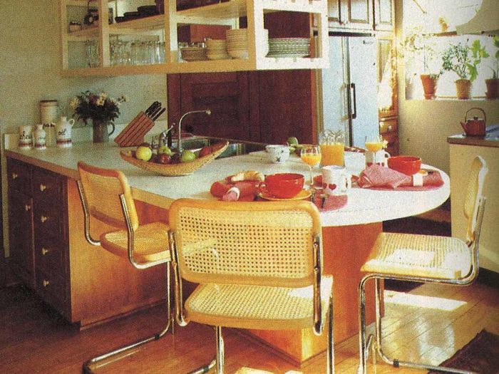 This room featured in 1981 issue of The Family Handyman features a little bit of every decor item that made up the ’80s. From the rattan table and baskets to the earth colors, it’s almost quintessential ’80s decor. The linoleum floor will certainly bring back memories for many, too.