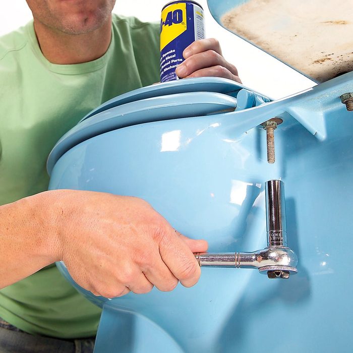 Installing a new toilet seat is an easy two-minute job: Just set the seat in place and tighten the nuts. Removing the old seat, on the other hand, can be a frustrating ordeal. Often, the bolts that fasten the seat are so corroded that you simply can’t unscrew the nuts. But there’s no need to explode—we have the solution.