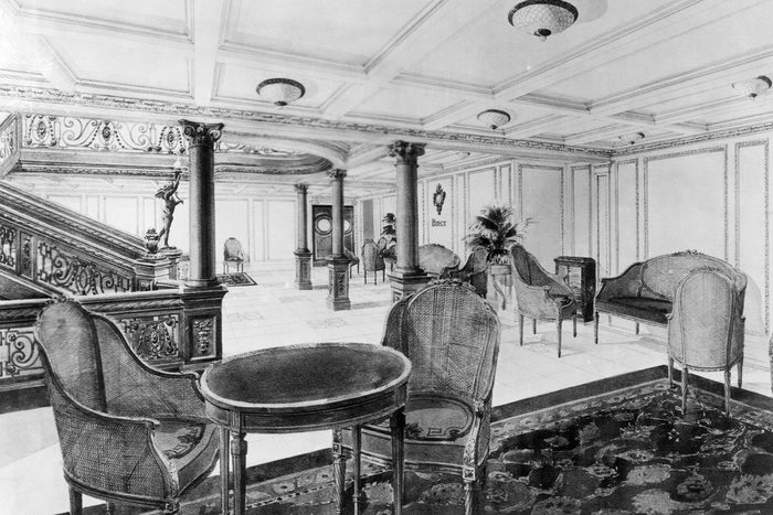 The first-class restaurant’s grandiose reception room was a place where people could gather before convening for their evening meal, the perfect place for the social elite. Other public areas included a lounge, reading and writing room, smoking room, veranda cafes, palm courts, and a Parisian-style cafe. Check out these things you didn’t know about the Titanic.