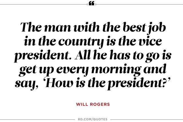 “The man with the best job in the country is the vice president. All he has to go is get up every morning and say, ‘How is the president?'”