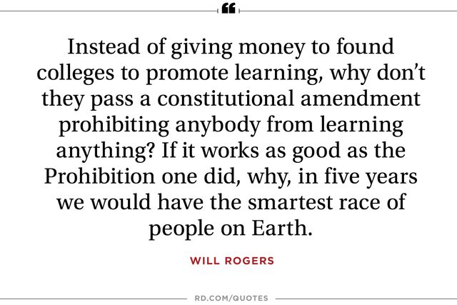 “Instead of giving money to found colleges to promote learning, why don’t they pass a constitutional amendment prohibiting anybody from learning anything? If it works as good as the Prohibition one did, why, in five years we would have the smartest race of people on Earth.”
