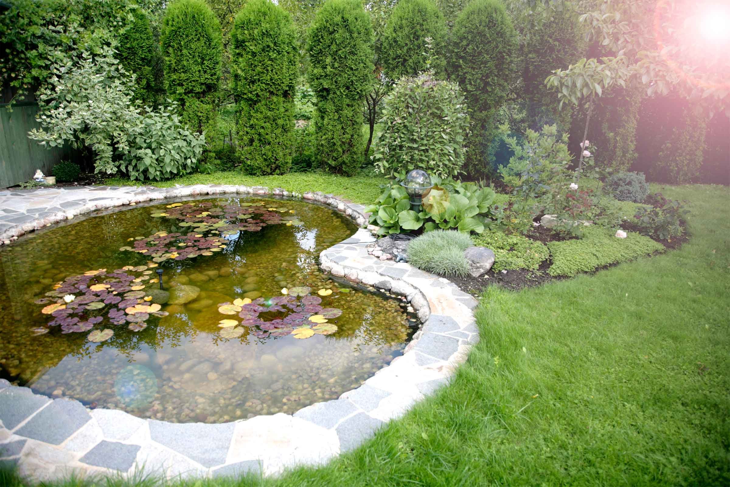 For formal ponds, brick edging can provide a clean-looking appearance, while natural ponds will be more visually appealing when edged in stone. Neglecting to provide edging can make the pond look bizarre and unfinished.